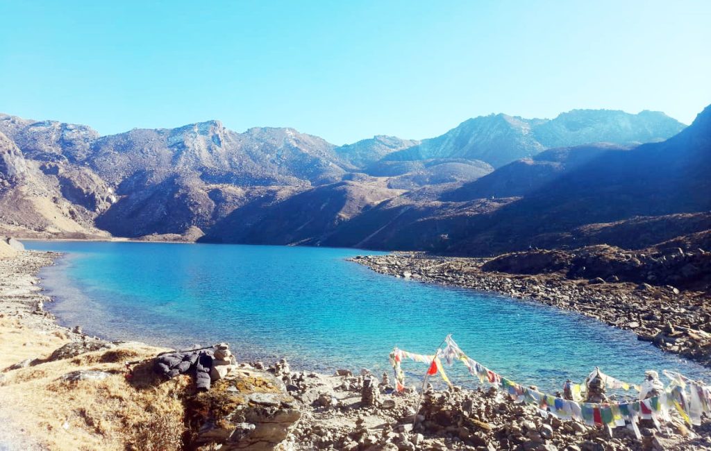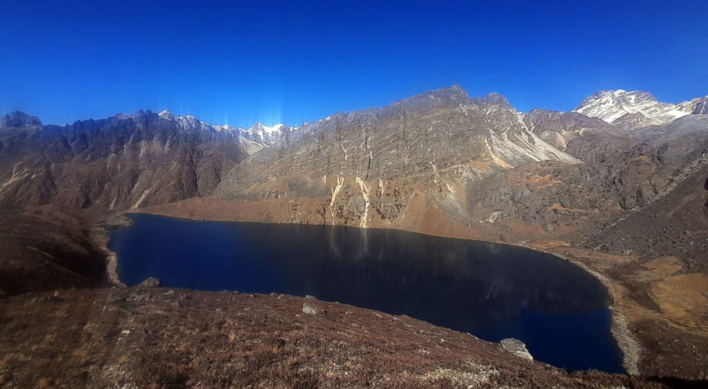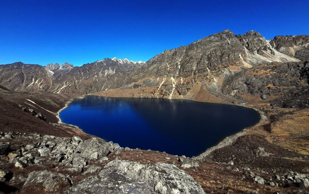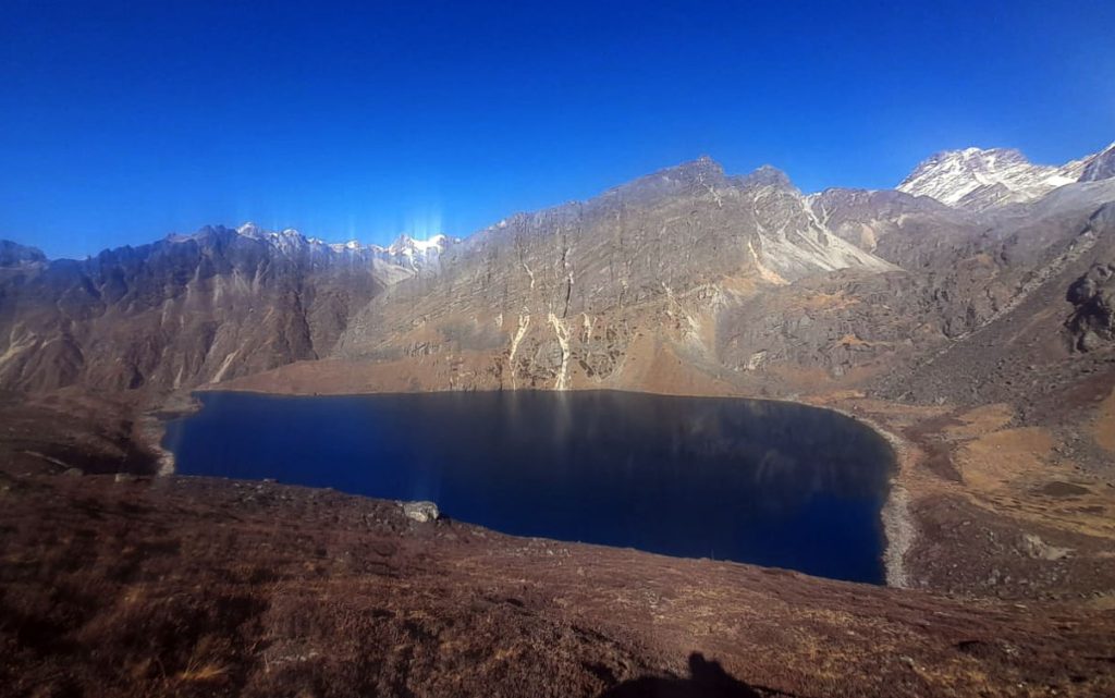 विवश केदेम/फक्ताङलुङ आकाशमा बादल मडारिएसँगै छिनमा नीलो, छिनमै कालो र छिनमै सिन्दुरे बन्ने सिङजेमा ताल बिहानदेखि बेलुकिसम्म फरक–फरक रंगमा सजिन्छ।